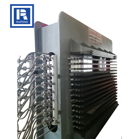 Máquina de prensagem a quente para placas de fórmica, fornecida pela planta, motor de corte de madeira PLC RUIFENG, alto nível de segurança conforme o projeto 30000